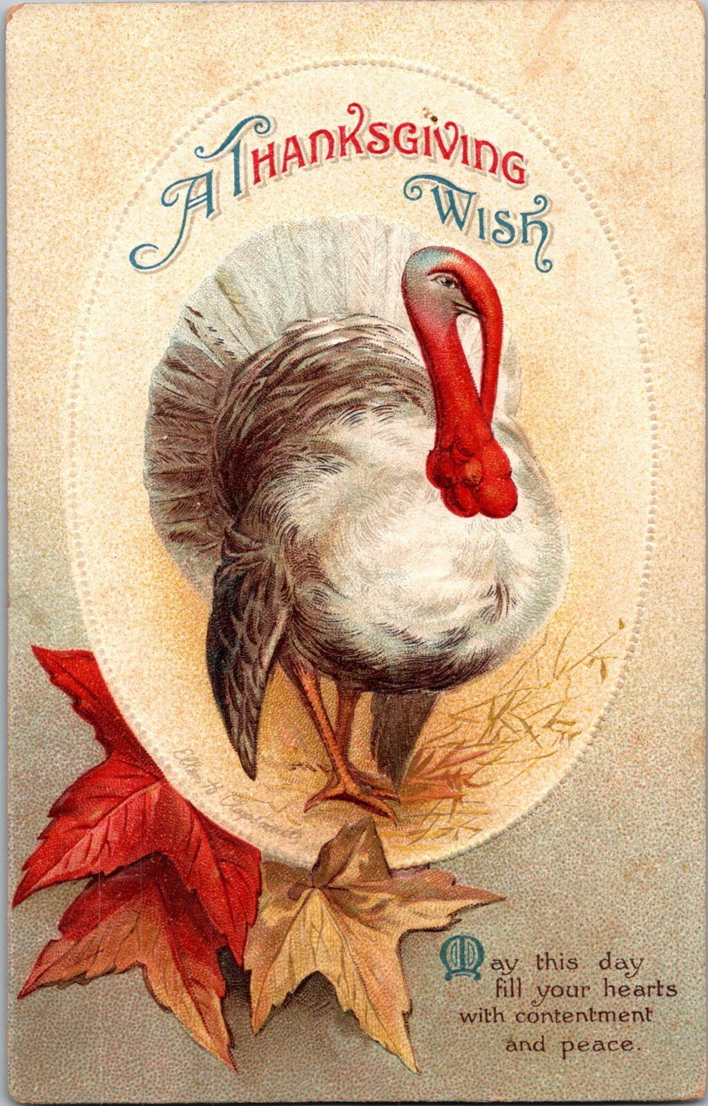 Antique Thanksgiving Postcard CLAPSADDLE Artist Signed Turkey Maple Leaf JD5