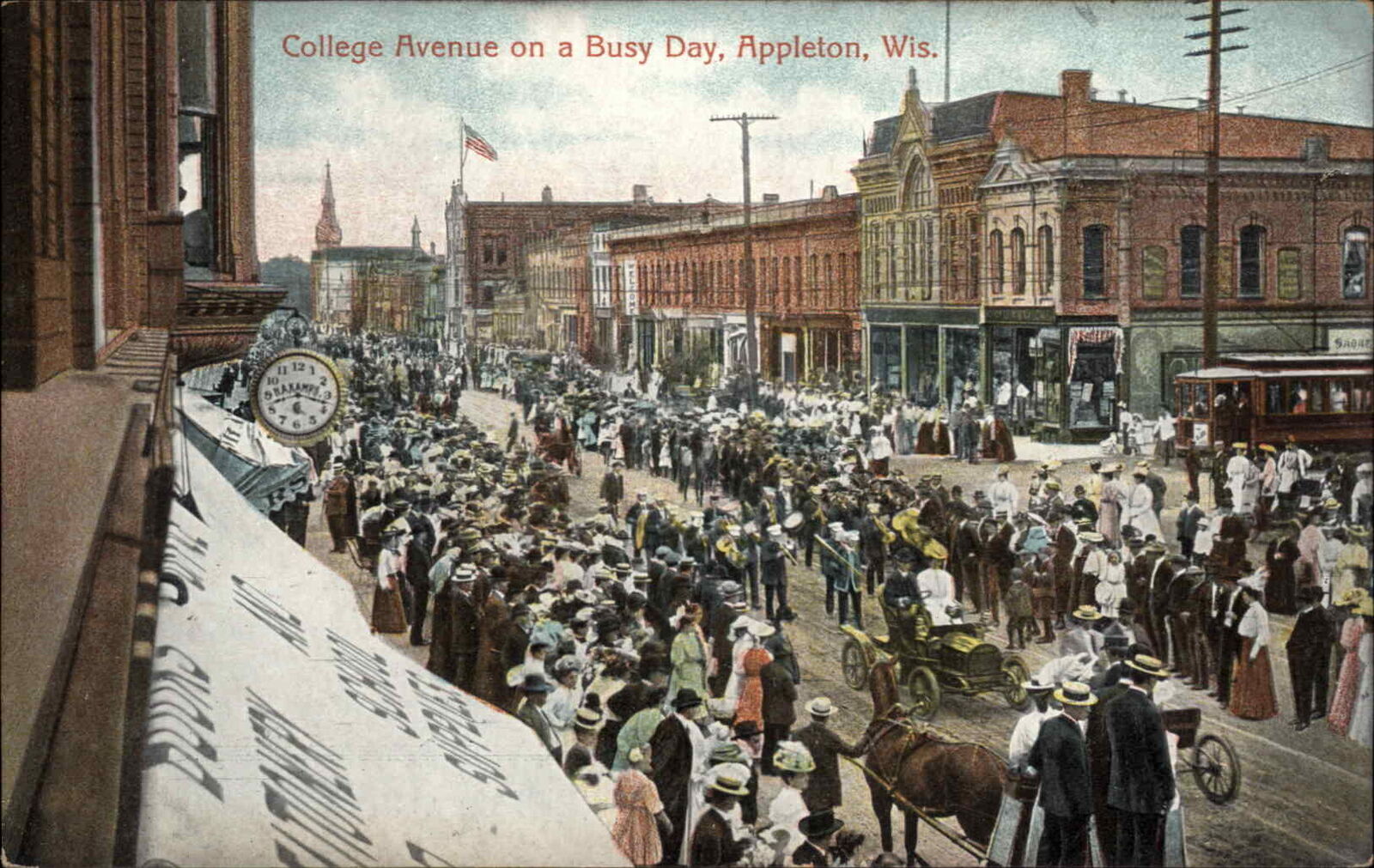 Appleton WI College Avenue Busy Scene c1910 Postcard