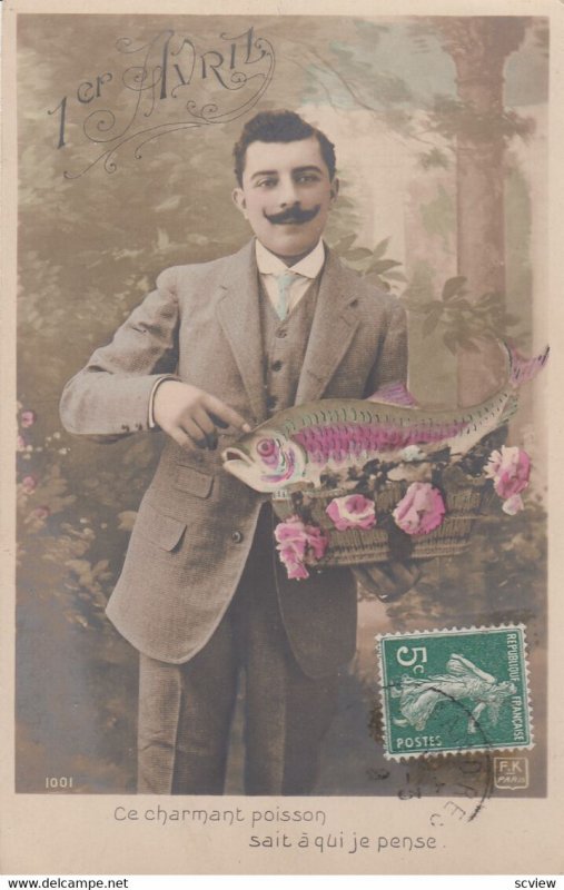 April Fool's Day , Man with fish , 00-10s :: Postcard , 3.5 by 5.5 , Real Photograph