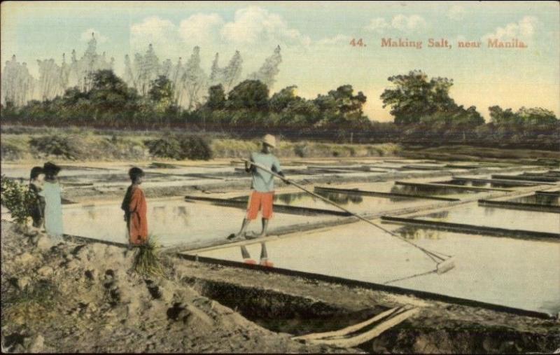 Aquaculture Making Salt in Manila Philippines c1910 Postcard