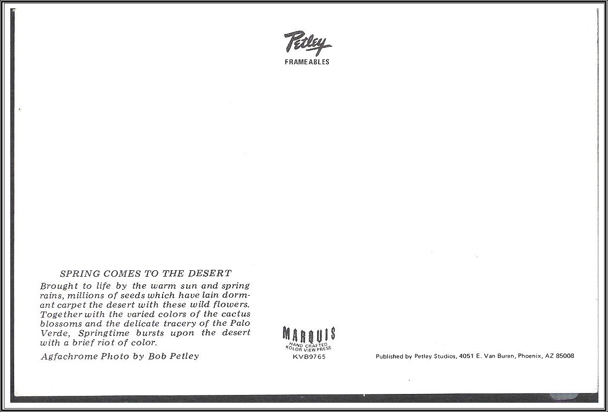 Type: Agfachrome Date: Publisher: Petley Photographer: Bob Petley Description: Spring Comes to the Desert Condition: Unaddressed - Continental Size
