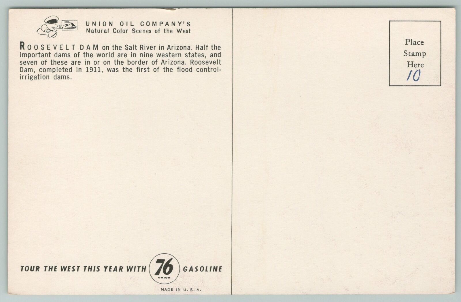 Arizona~Roosevelt Dam~Vintage Postcard