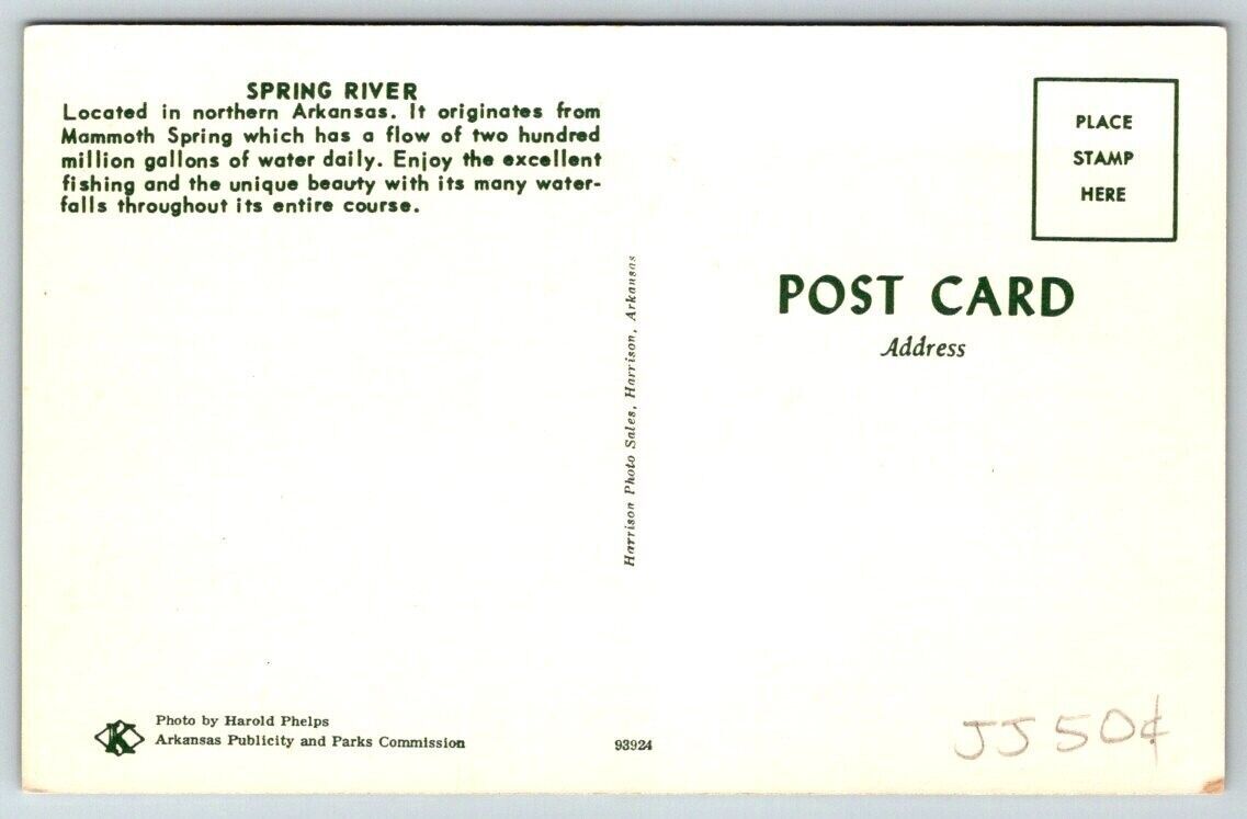 Arkansas Spring River Mammoth Spring Postcard