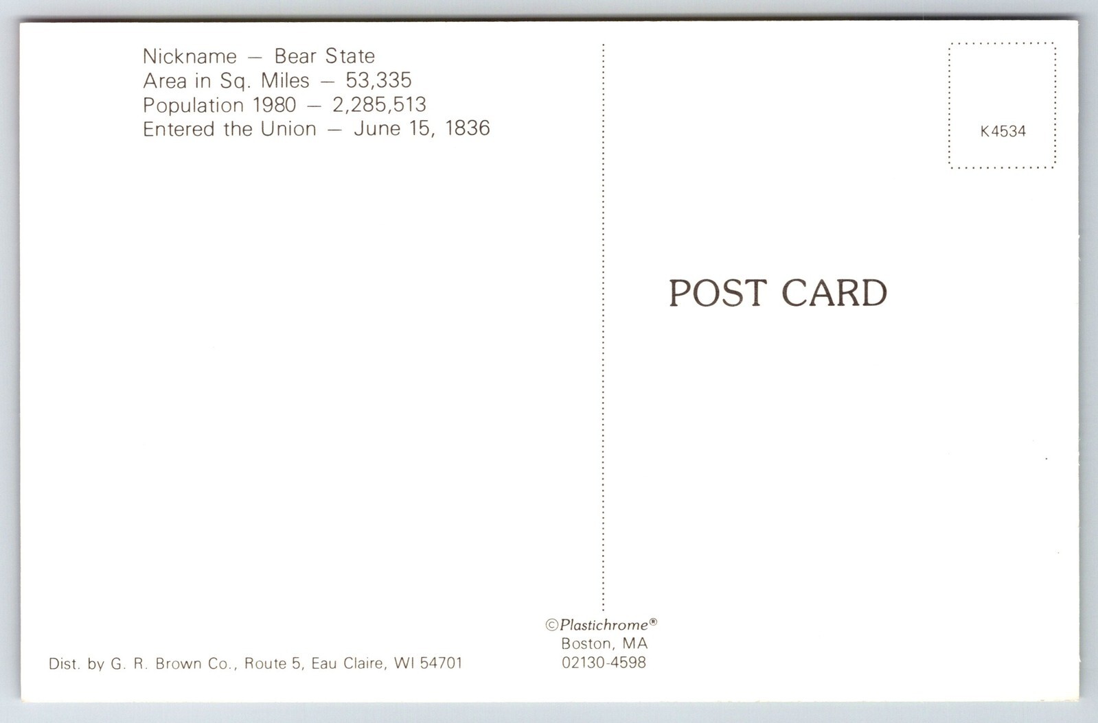 Arkansas State Map~Jonesboro~Monticello~Camden~Ducks~Coal~Cotton~1980 Postcard