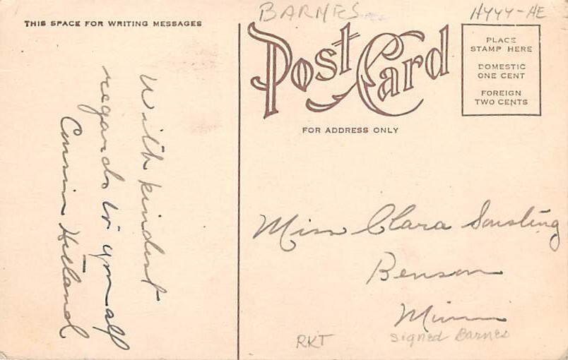 Artist Barnes Cat Postcard , Grade: 2 Size: Regular Size Postcard - approximately 3 1/2 inch x 5 1/2 inch (9 CM x 14 CM) Grading Scale: Grade 1 = Perfect corners Grade 2 = Very Minimal corner wear, no creases G ... Read More
