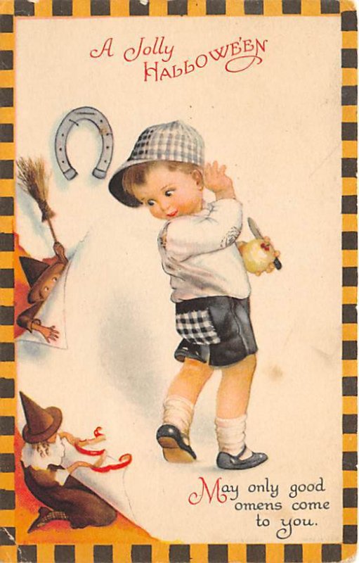 Artist Ellen Clapsaddle, Wolf Trademark Halloween Postcard 1925, Grade: 4 - corner wear, smal crease left bottom corner tip, , Size: Regular Size Postcard - approximately 3 1/2 inch x 5 1/2 inch (9 CM x 14 CM) G ... Read More