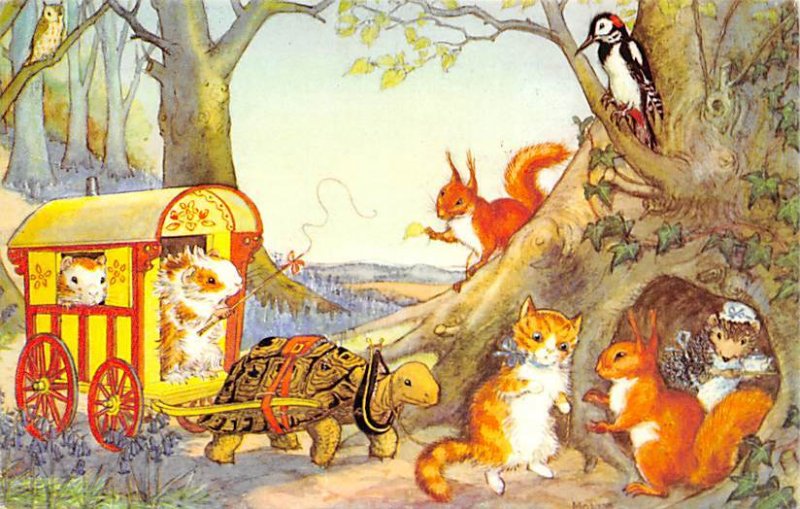 Artist Molly Brett Dressed Squirell , Cat , Rabbit and Turtle Postcard Postcard,