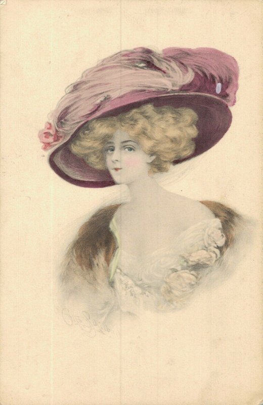 Artist Signed Lady Big Purple Hat 05.15
