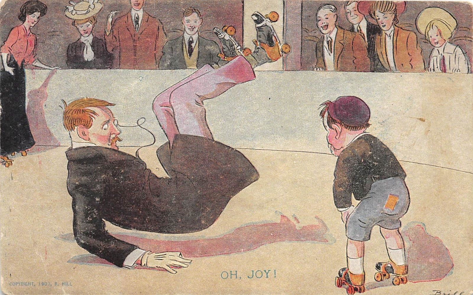 ARTIST SIGNED Postcard 1908 ROLLER SKATING SERIES 6 Fall Child Brill 83