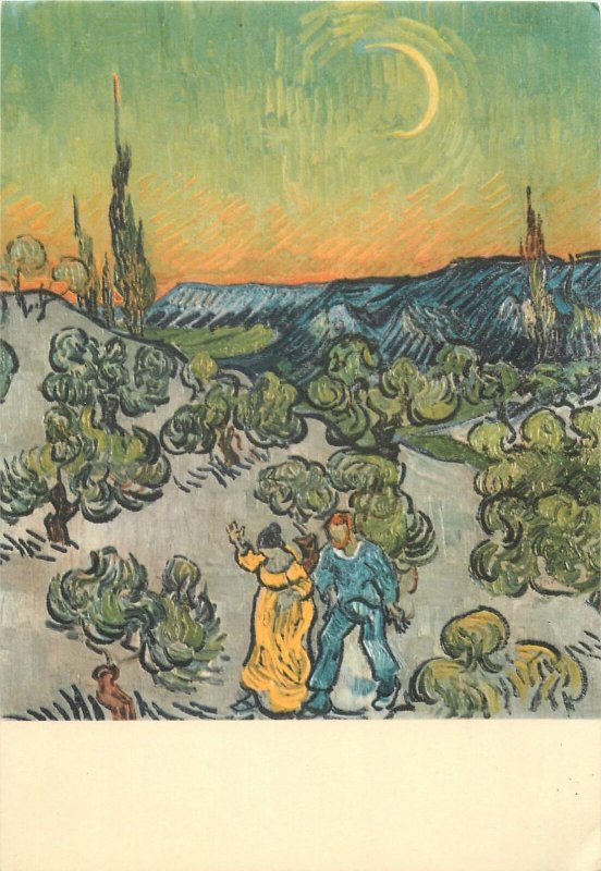 Artist signed Postcard Van Gogh walk in the evening