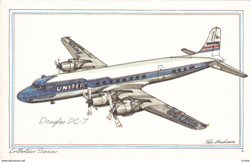 AS: Roy Anderson; United Douglas DC-7, 1960s :: Postcard, 3.5" by 5.5", Chrome, EX