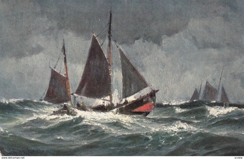 AS: Sailing Vessels in rough water, 1900-10s :: Postcard, 3.5" by 5.5", Lithograph, EX