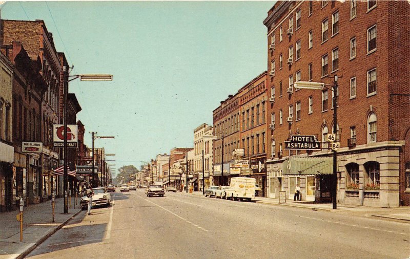 Ashtabula Ohio 1950s Postcard Main AvenueStores Hotel Ashtabula