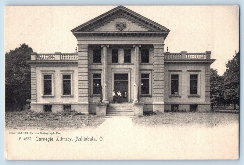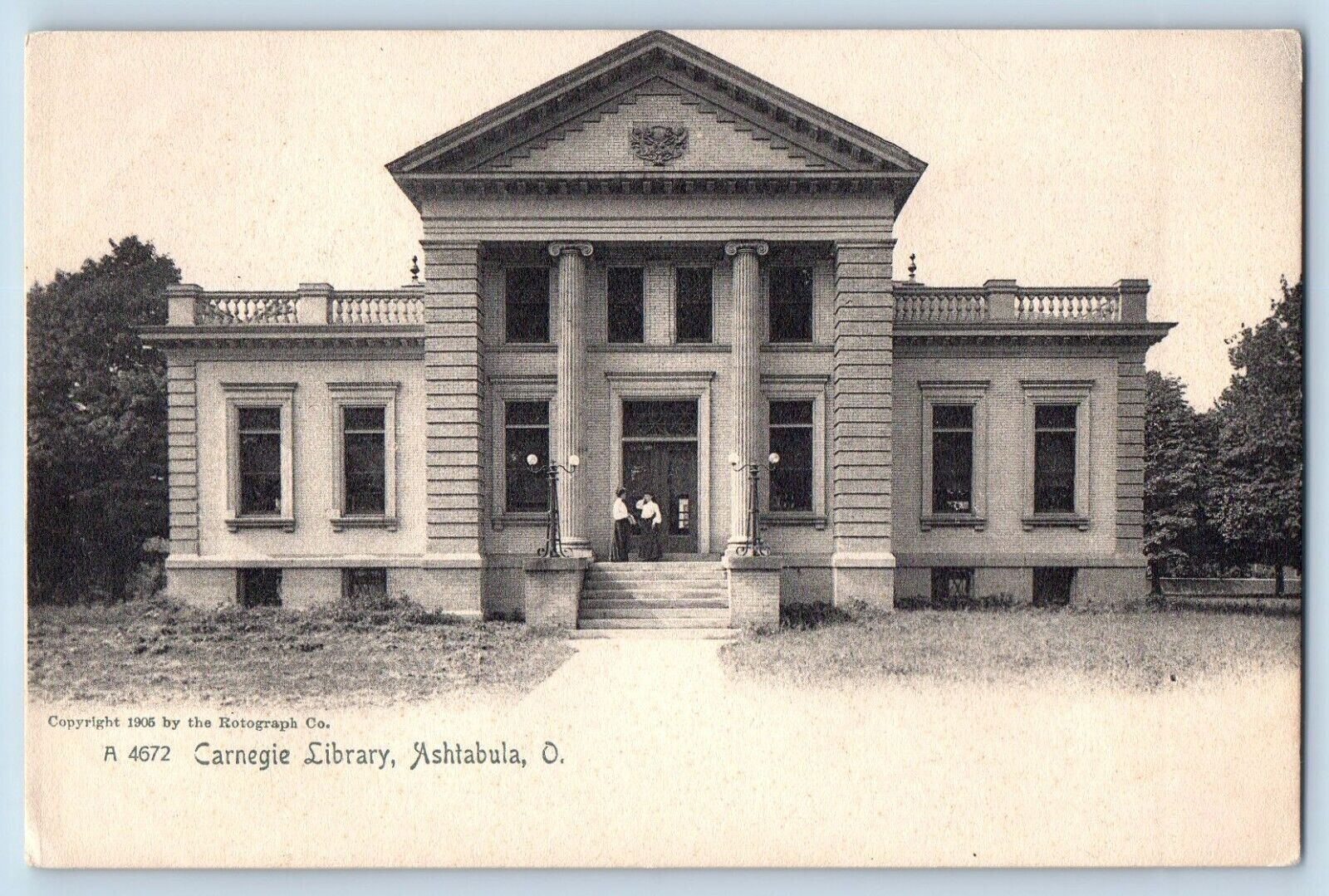 Ashtabula Ohio Postcard Carnegie Library Exterior Building c1905 Vintage Antique