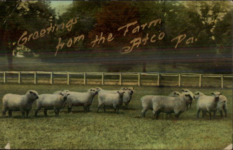 Atco PA Greetings From the Farm - Sheep c1910 Postcard