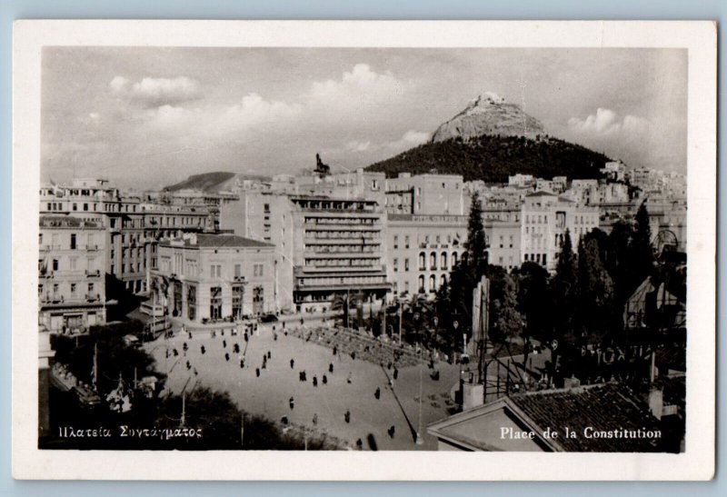 Athens Attica Greece Postcard Constitution Square c1940's RPPC Photo
