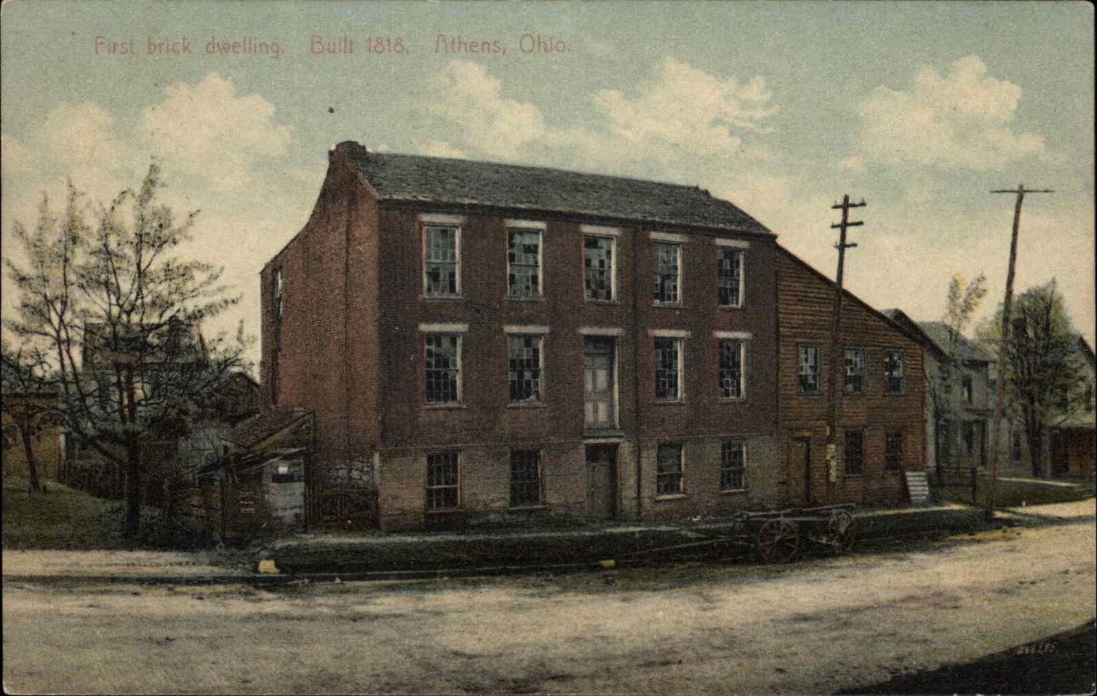 Athens Ohio OH First Brick Dwelling Early Architecture c1910 Vintage Postcard