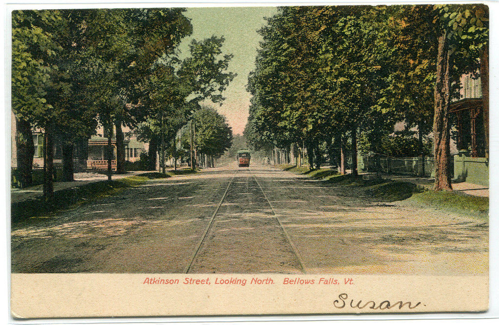 Atkinson Street Streetcar Bellows Falls 1908 postcard