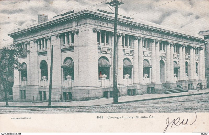 ATLANTA , Georgia , 1907: Carnegie Library :: Postcard, 3.5 by 5.5, Litho