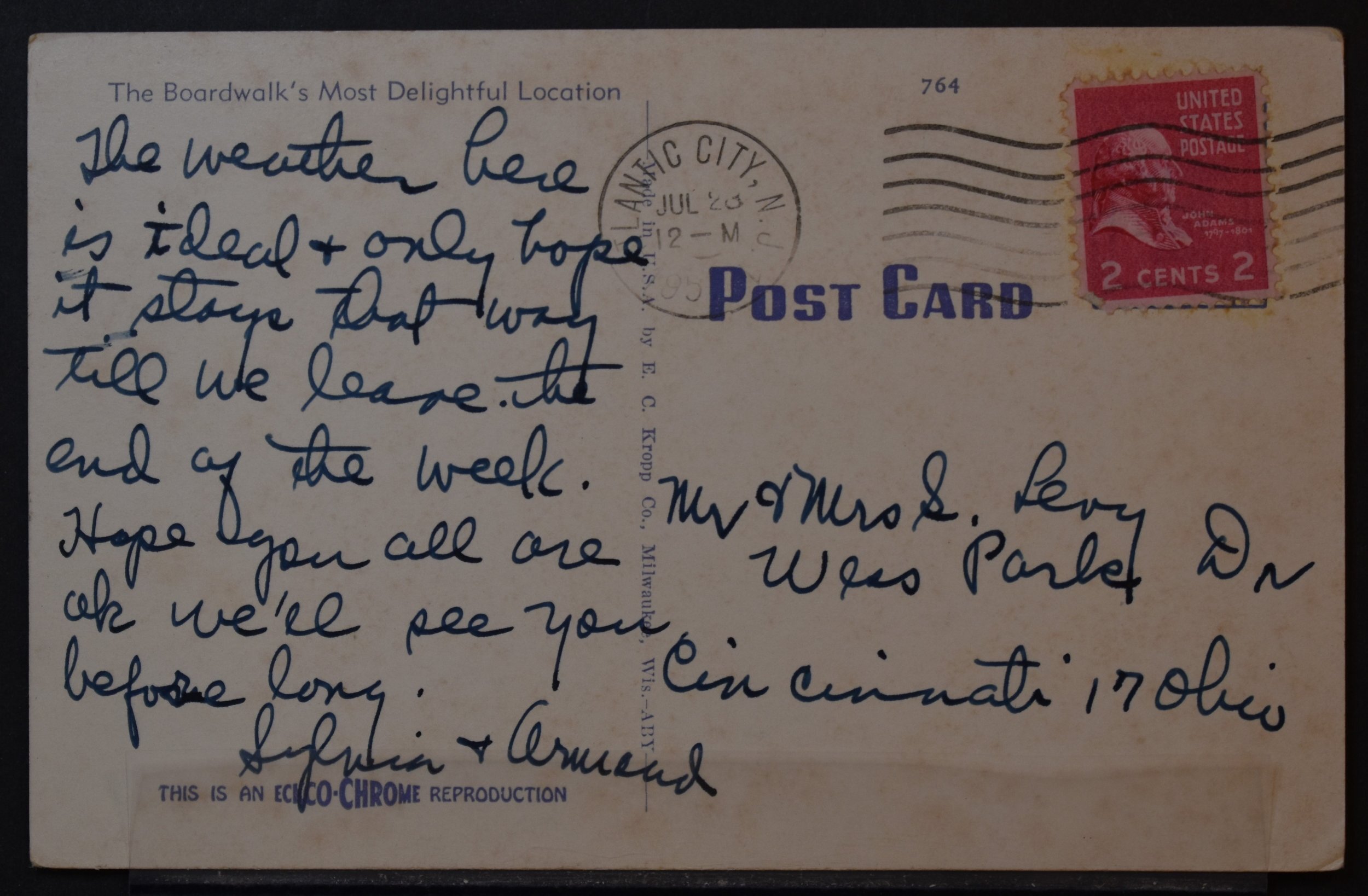 Standard size US postcard [0043]. See scans.My scans may show a small piece of plastic that is not part of the card on one edge, it is there to prop the card up as I get photos of it. I ship your card in between two pieces of custom cut thin cardboard to make sure you get your card just like it shows in the scans. See my feedback here and on that other site, lots of folks are very satisfied with how I get you your card.