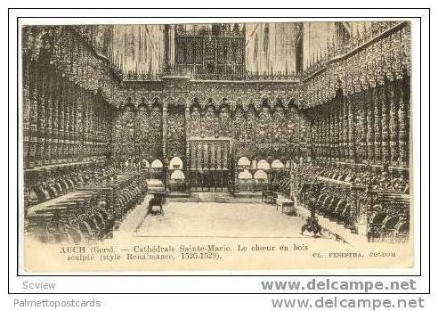 AUCH, France, PU 1927, interior Catherdal :: Antique (Vintage) Original Postcard, Standard Size (3.5 X 5.5 ) litho, EX