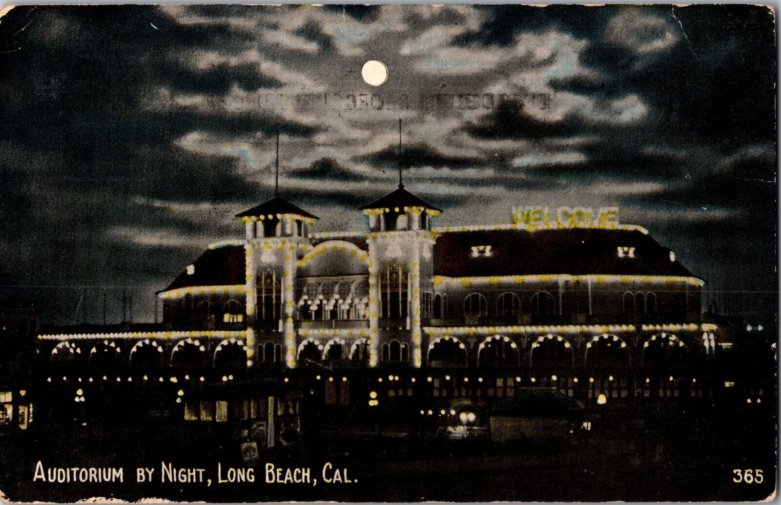 Auditorium by Night, Long Beach CA c1912 Vintage Postcard I51