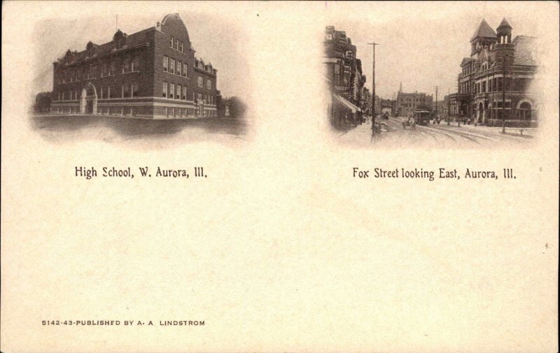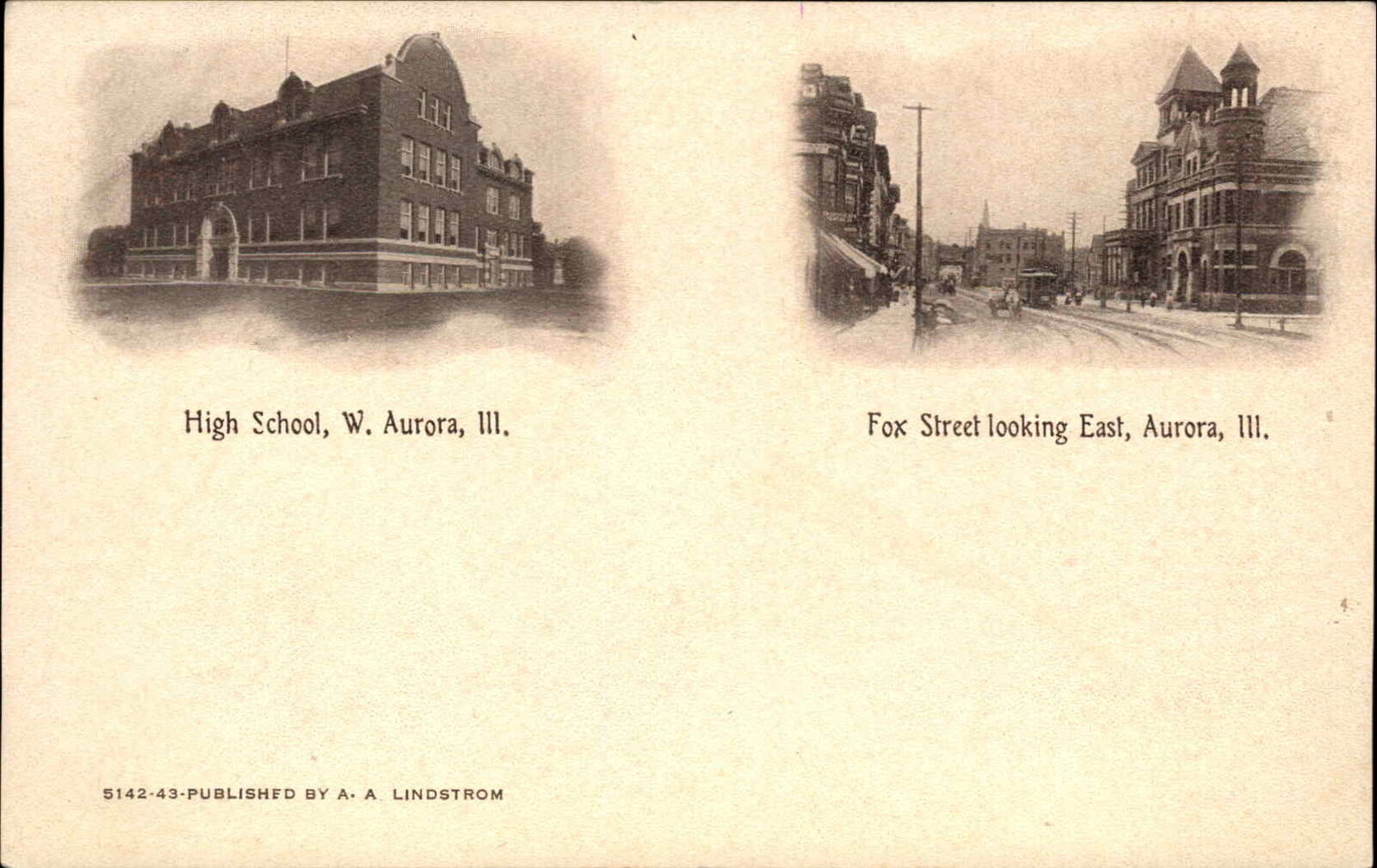 Aurora Illinois IL High School Fox Street c1910 Vintage Postcard