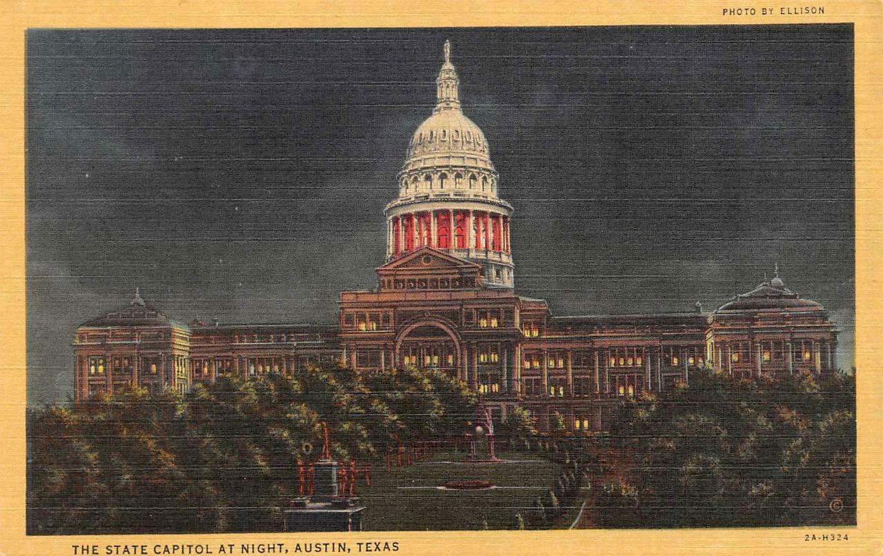 AUSTIN, TX Texas STATE CAPITOL~Night View c1940's Curteich Linen Postcard