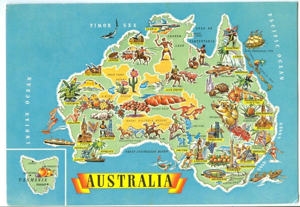 10661 Australia, Map, 1972 used Postcard 14.5x10 cm Condition: very good, corners slightly worn.