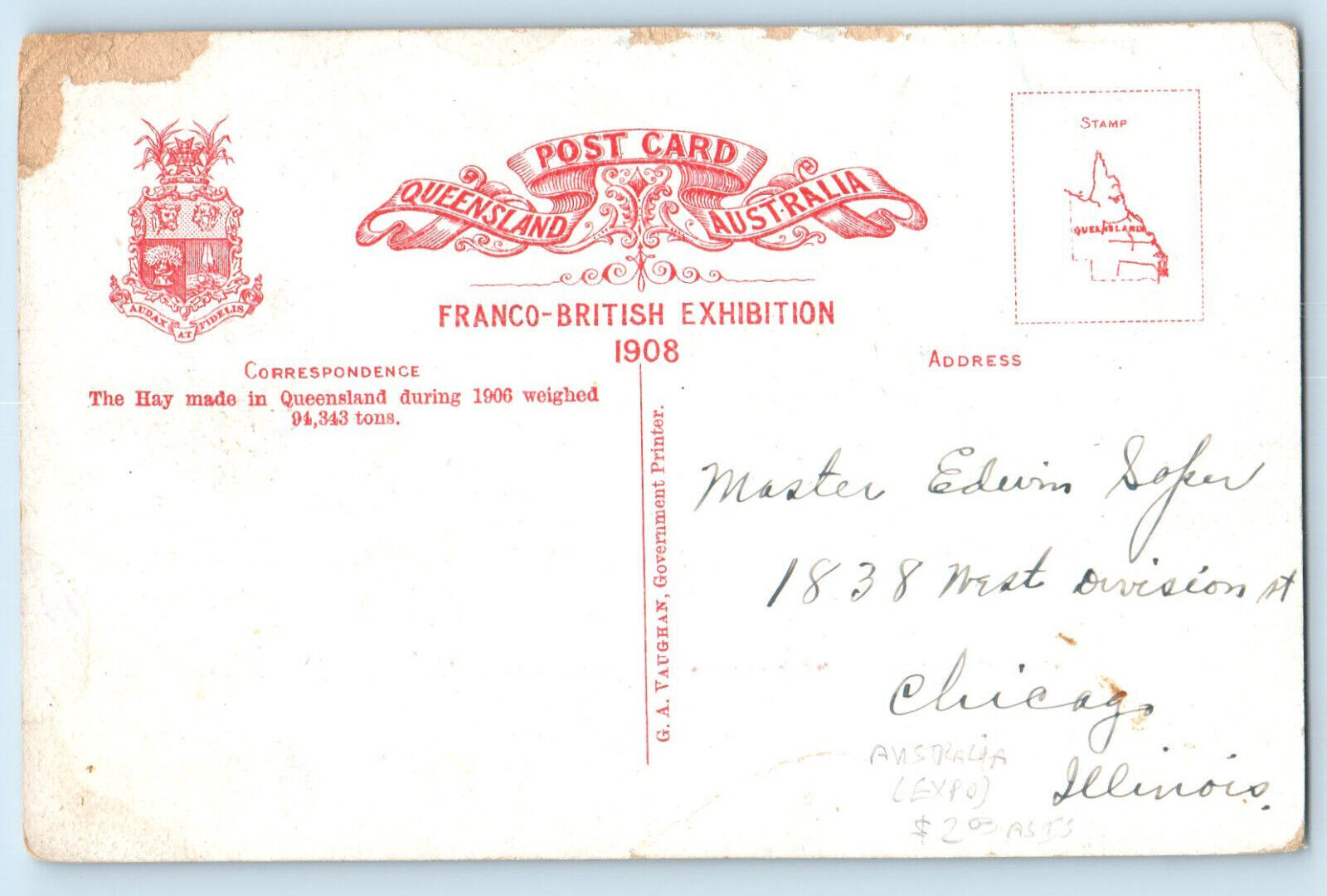 Australia Postcard Ploughing Darling Downs S. Queenland 1908 Antique Posted