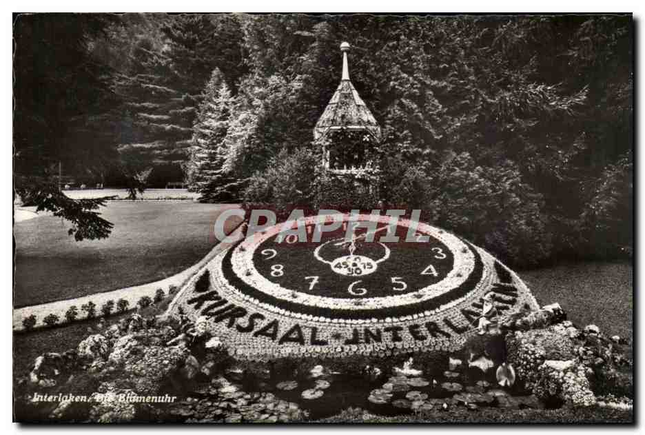 Austria - Austria - Kursaal Interlaken clock - flowers Old Postcard