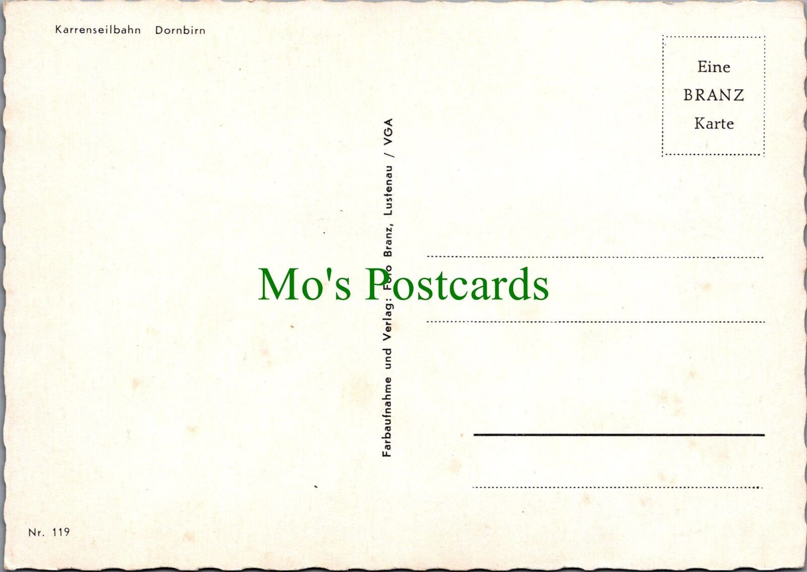 This is an Austria Postcard - Karrenseilbahn, Dornbirn, Vorarlberg RR15917Publisher: Postcard size: ContinentalPostcard defect(s): Please also use the image magnifier to make your own assessment on the condition.When possible all of our postcards will be posted to you inside a collectable plastic postcard sleeve and a board backed envelope which will be marked 'Please do not bend'.The 'Mo's Postcards' watermark does not appear on the actual postcard'.Mo's Ref: Austria Postcard - Karrenseilbahn, Dornbirn, Vorarlberg RR15917 Listing and template services provided by inkFrog