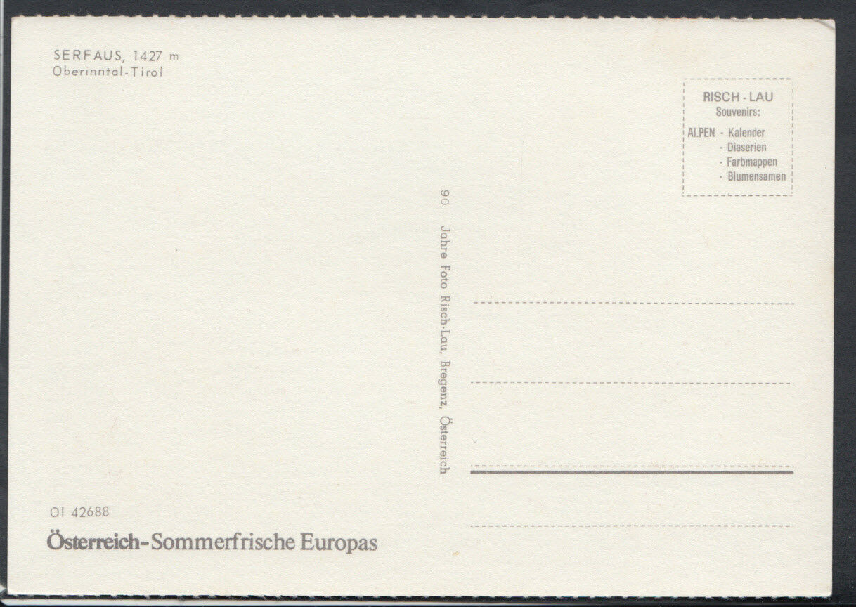 Mo's Postcards Postcard Description: Austria Postcard - Serfaus, Oberinntal, Tirol Genealogy Information: Defect(s): Postage & Payment: For U.K residents the quoted P & P fee is for any number of postcards purchased ... Read More
