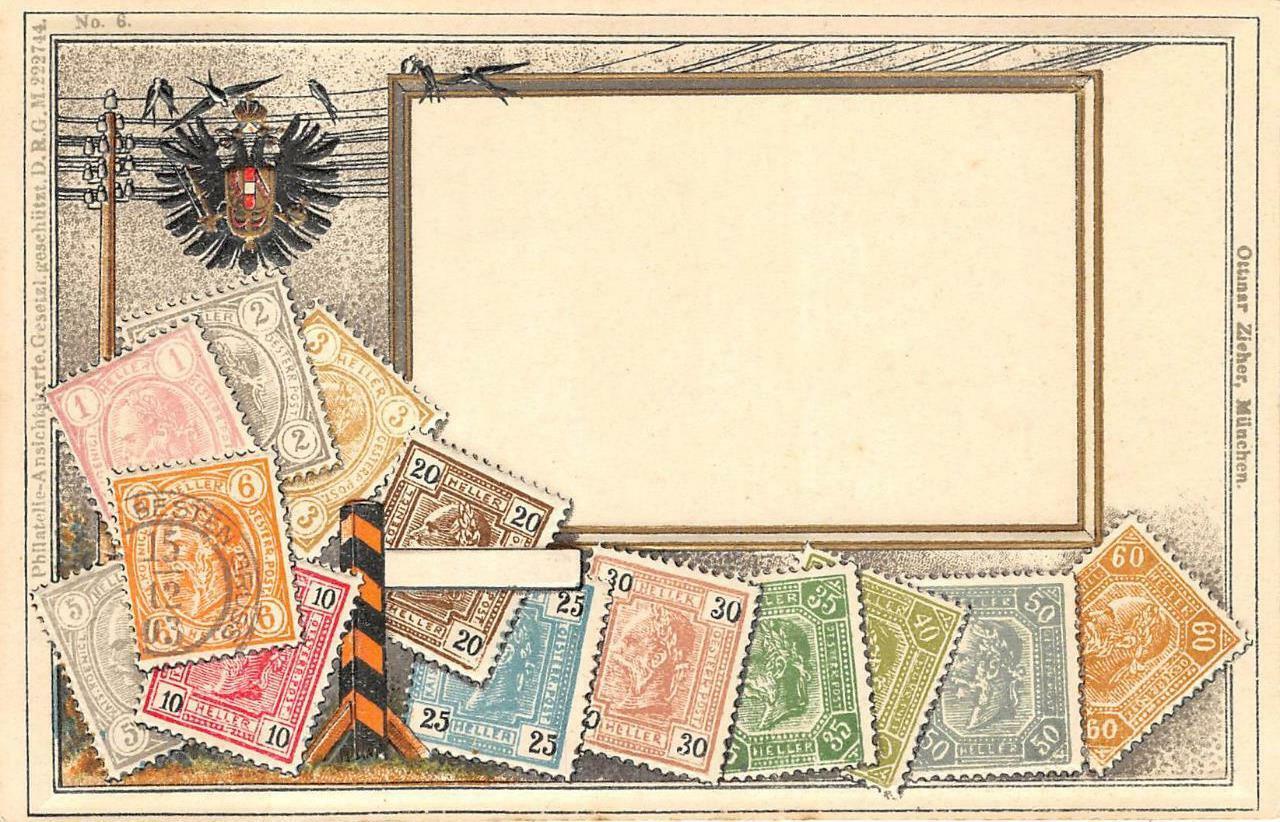 AUSTRIA STAMP MOTIFF EMBOSSED POSTCARD (c. 1910)