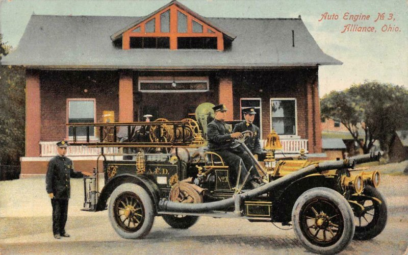 AUTO FIRE ENGINE NO. 3 ALLIANCE OHIO POSTCARD 1910