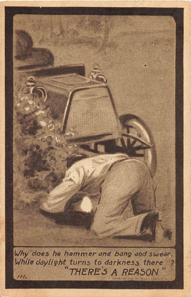 AUTOMOBILE CAR TROUBLE COMIC RELATED MESSAGE POSTCARD 1910