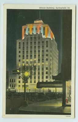 AUTOS @ ILLINOIS BLDG @ NITE SPRINGFIELD IL POSTCARD