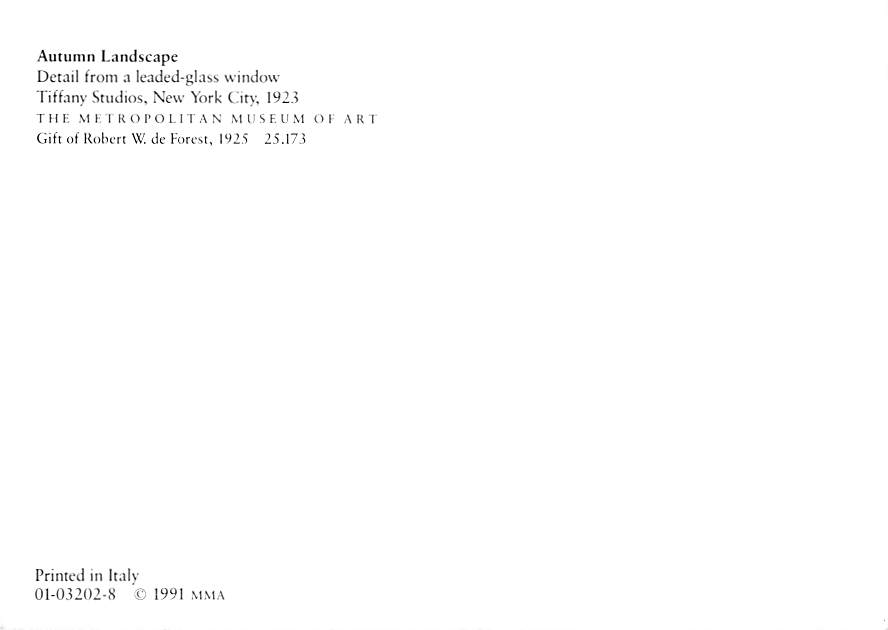 Autumn Landscape - Stain Glass Window Continental Size Postcard, Approx 4 in x 6 in (10 cm x 15.25 cm) Continental Size: 4X6 inches (10.5 cm x 15 cm)