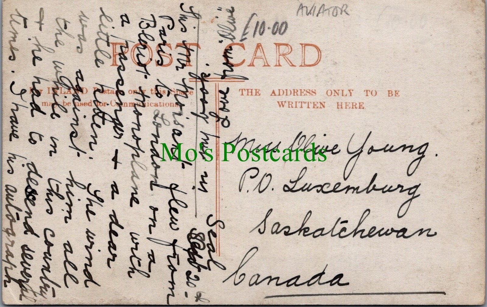 Aviation Postcard - Aviator Mr John Moisant. This is a fantastic standard sized postcard which would be a great addition to your postcard collection. This postcard has a small crease to the bottom left hand corner t ... Read More