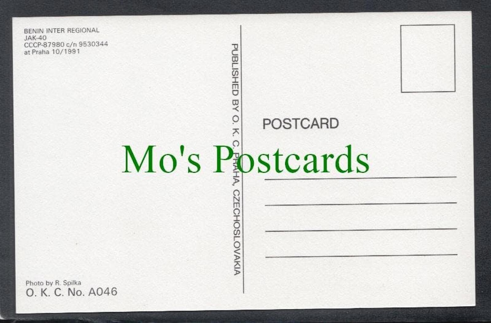 Postcard showing an Aviation Postcard - Benin Inter Regional Aeroplane.Mo's Postcards offers for sale an Aviation Postcard - Benin Inter Regional Aeroplane.Standard size postcard. Published by O.K.C.Any significant ... Read More