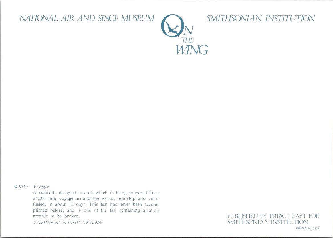 Aviation VOYAGER~Radically Designed Aircraft 1986 4X6 Smithsonian Postcard