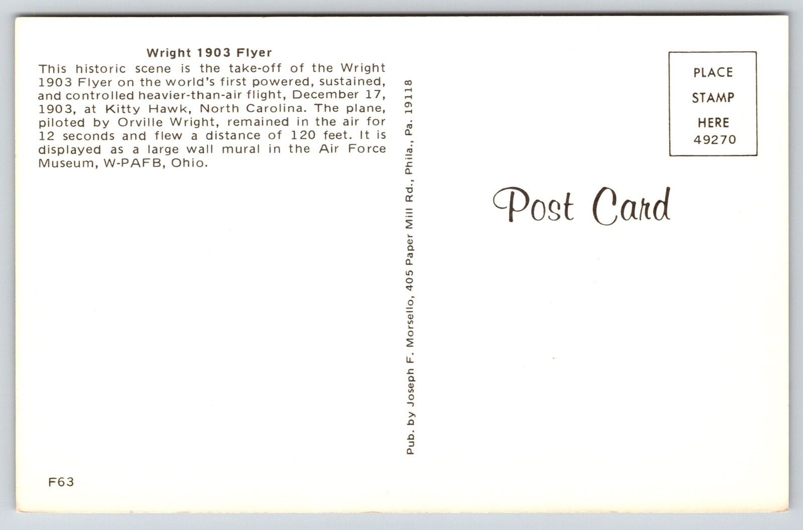 Aviation~Kitty Hawk North Carolina~Orville Wright 1903 Flyer~1950s Postcard