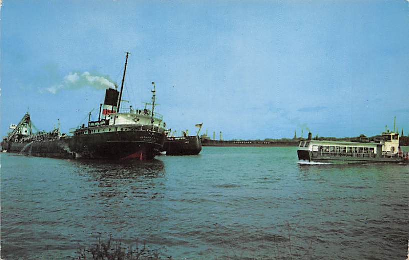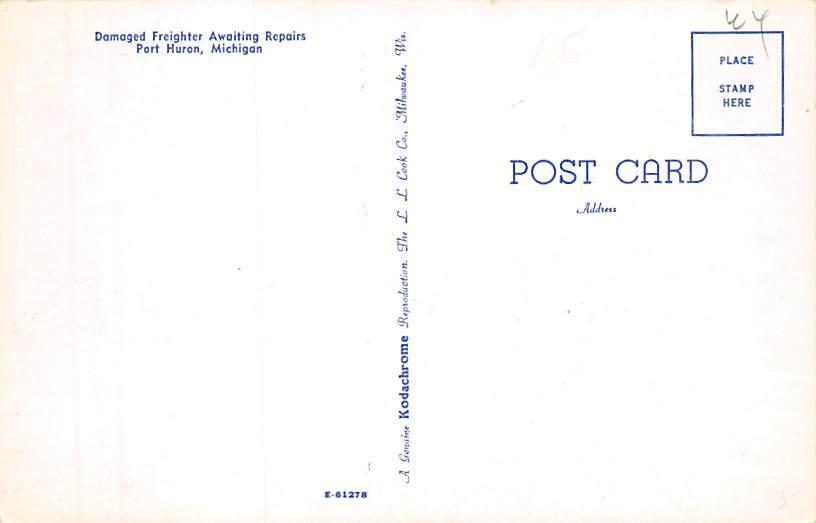Awaiting Repairs Damaged Freighter - Port Huron, Michigan MI Postcard - View back side image