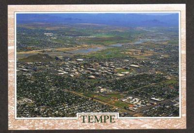 Az aerial view of tempe arizona postcard pc located between phoenix & mesa az. This is a newer continental size postcard (4" by 6") with some corner and edge wear. Postally unused postcard. (pc-5951) (see scan).