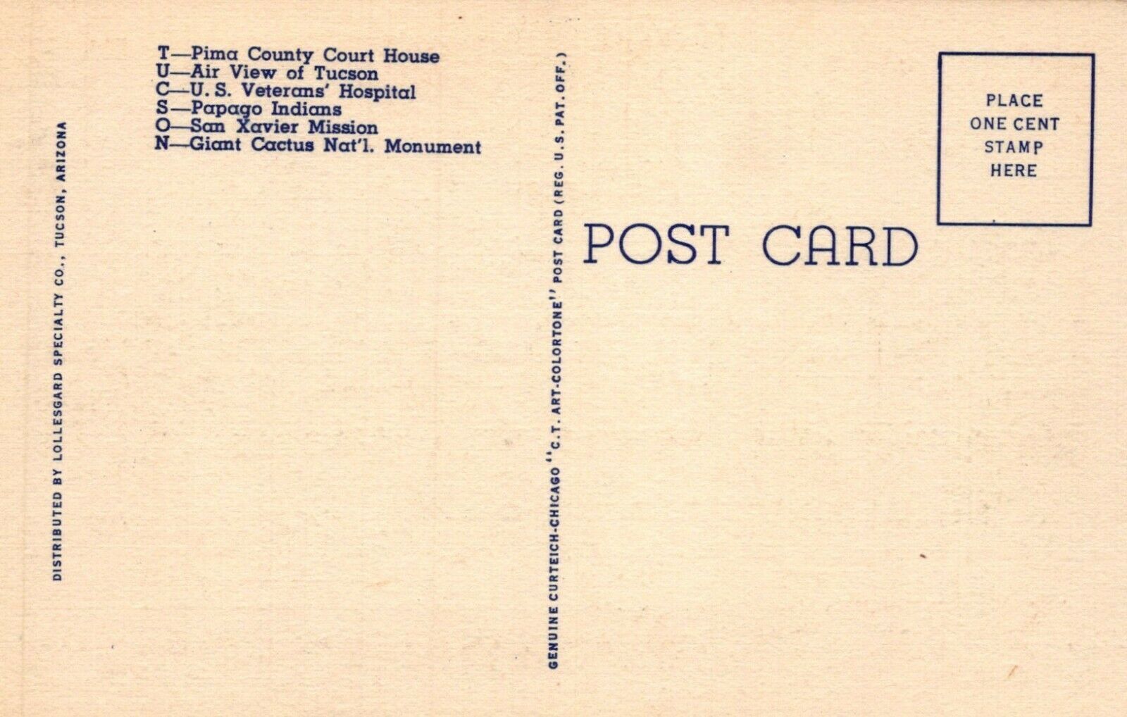 Tucson, Arizona Linen Large Letter Postcard Curt Teich # 8A-H808 Please check scans for condition. Please wait for invoice with multiple card purchases. Thank you!