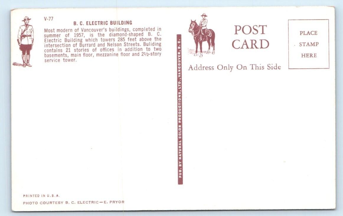 B. C. Electric Building VANCOUVER night scene Canada Postcard