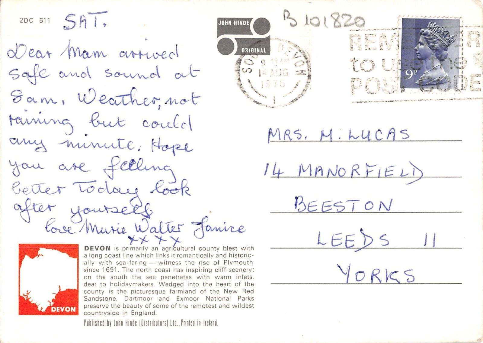 B101820 greetings from devon map cartes geographiques uk