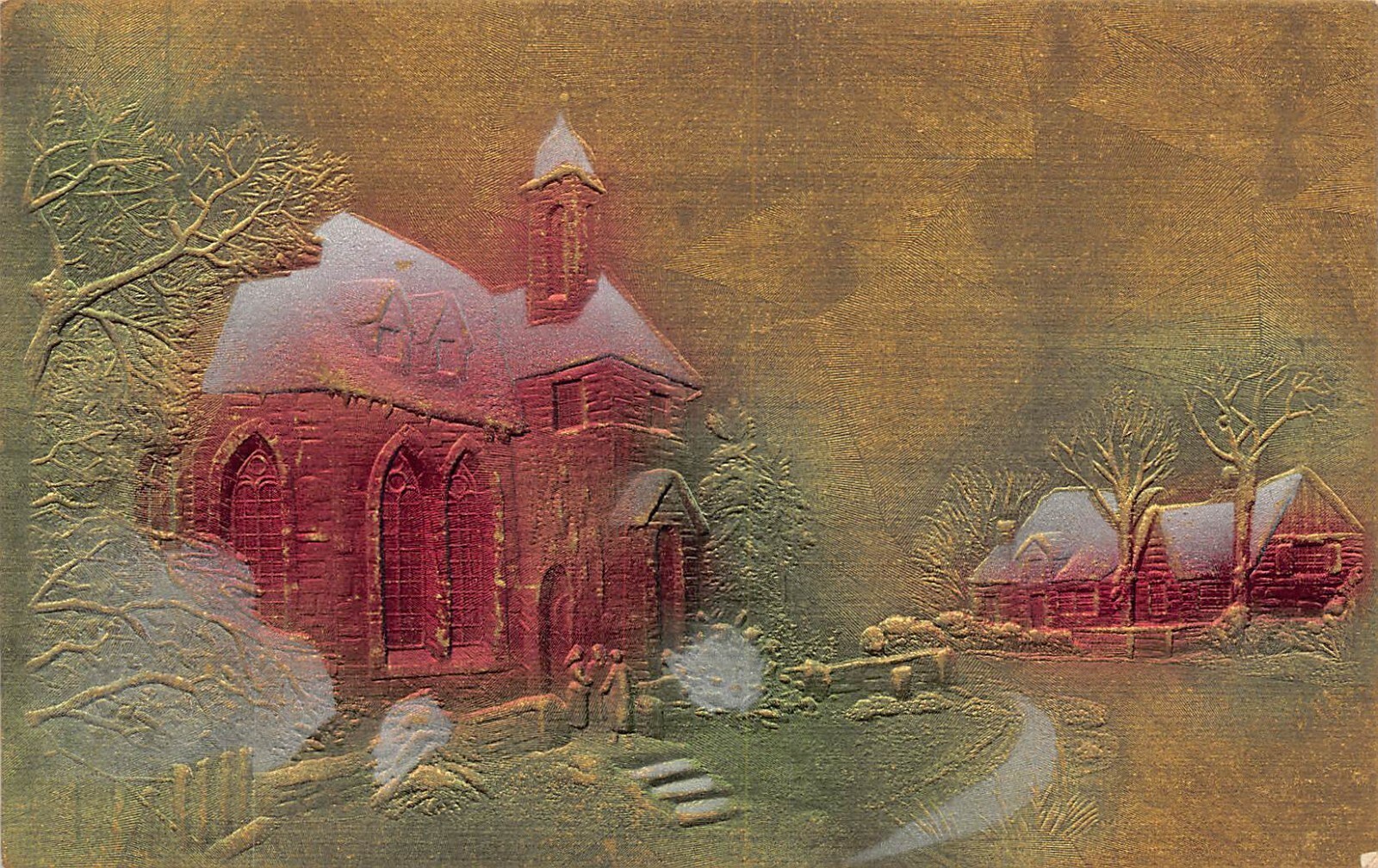 B152 New Year Greetings 1905 Village Church Houses embossed vintage postcard This item is listed via xdm.it software