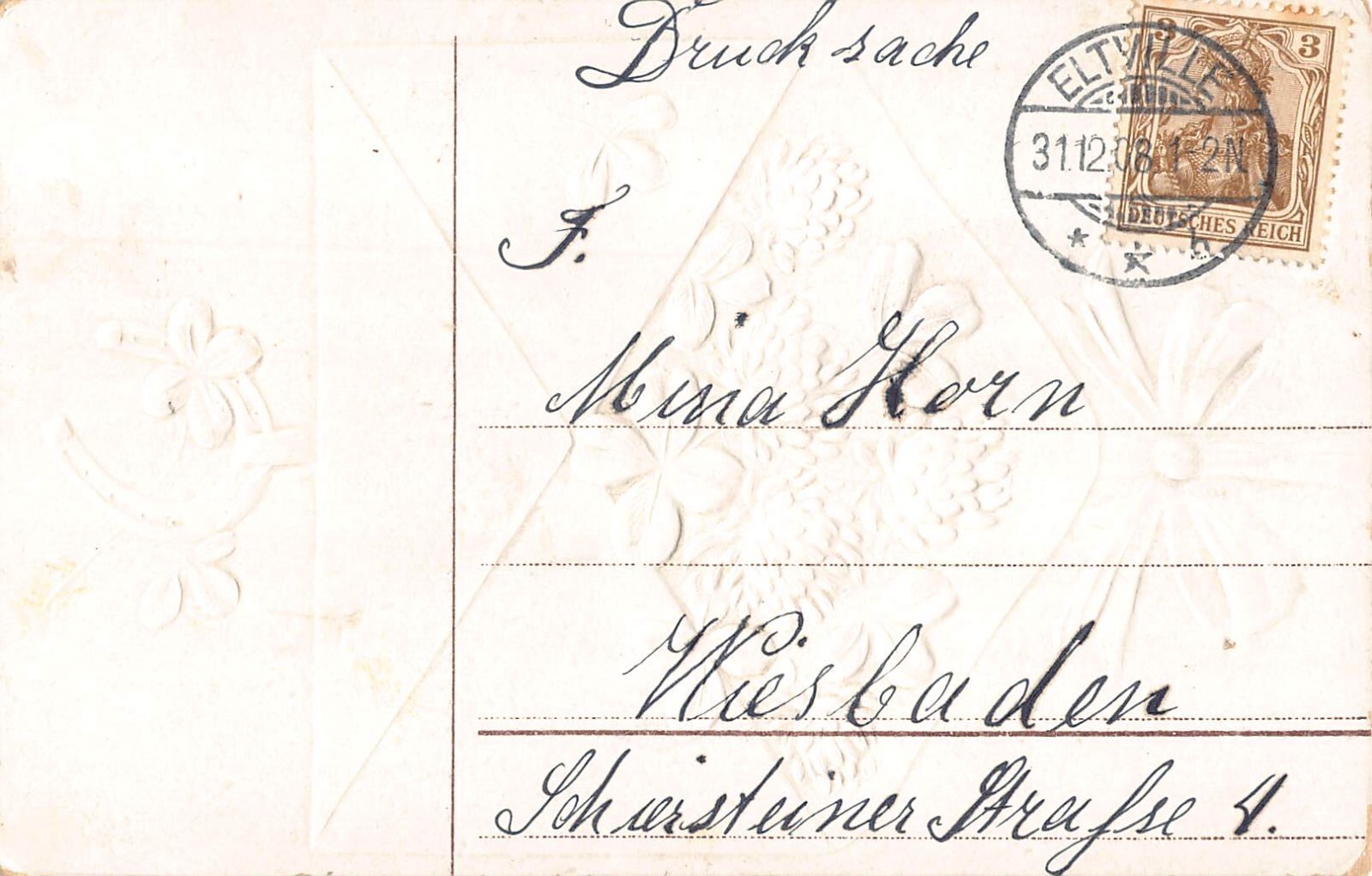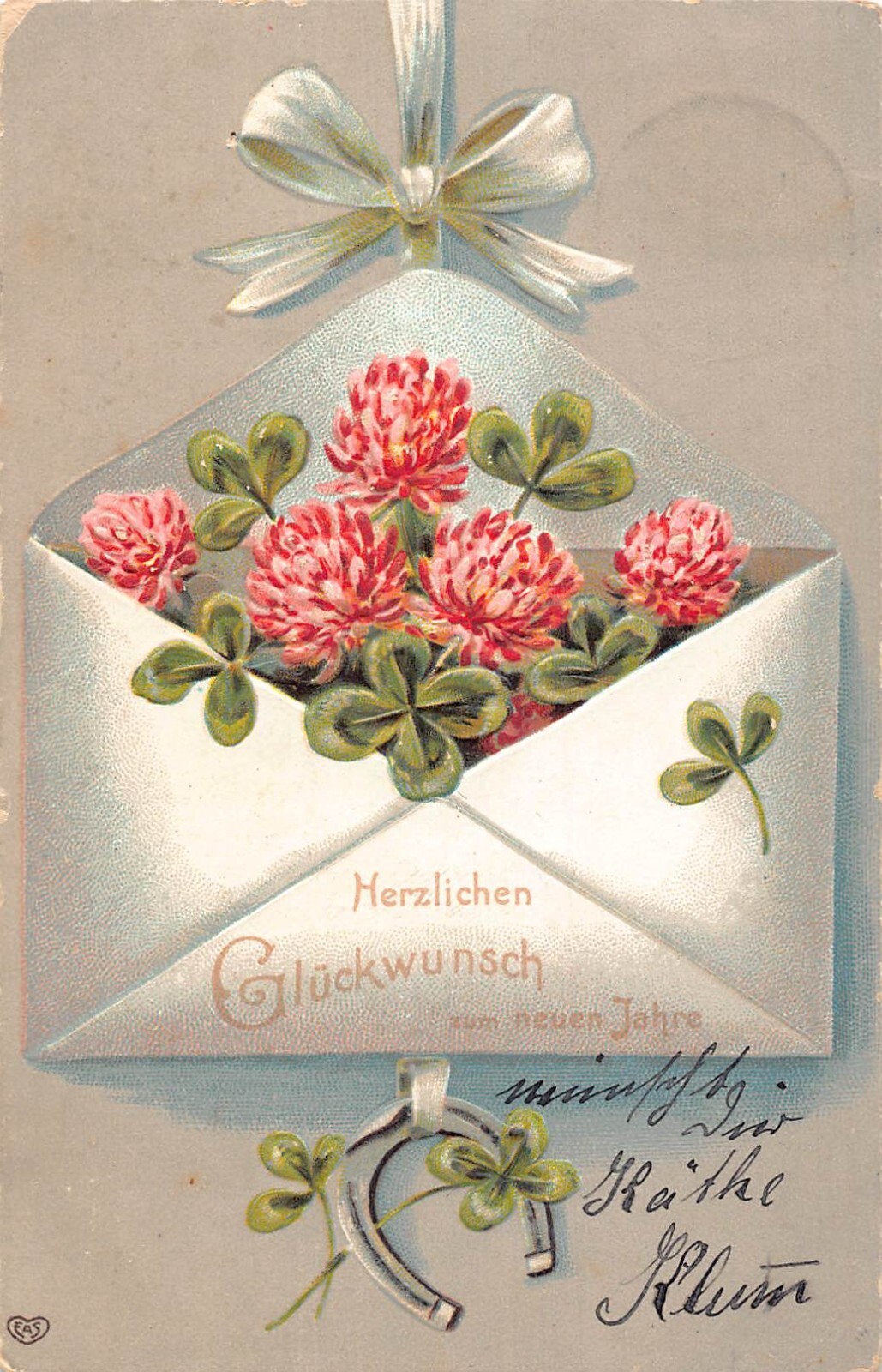 B191 New Year Greetings 1908 Shamrock Thistle Horseshoe Letter embossed postcard This item is listed via xdm.it software
