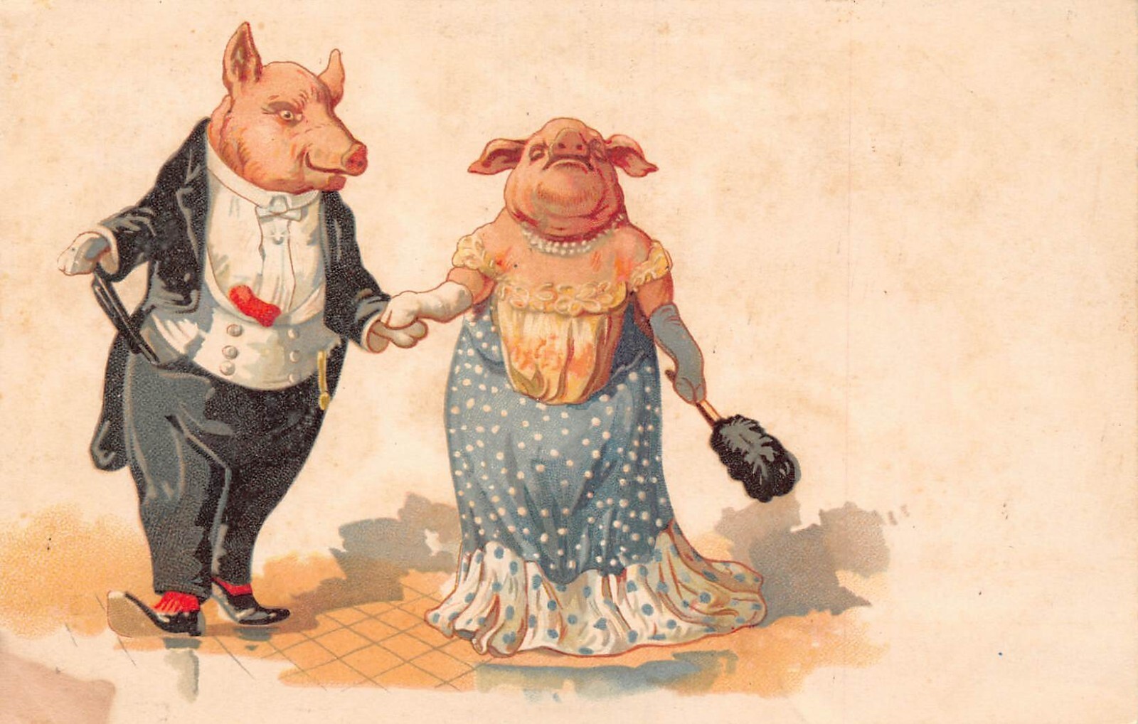 B199 Humanized Pigs as Couple on the Dance Floor Comic Humor postcardThis item is listed via xdm.it software